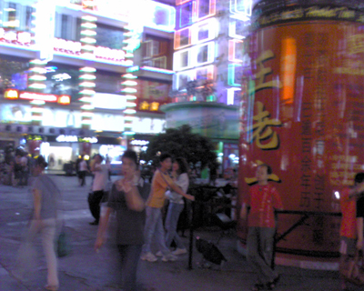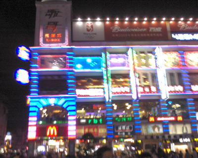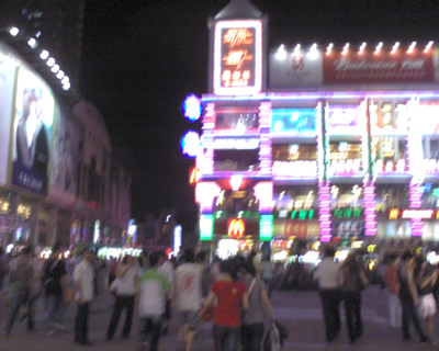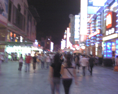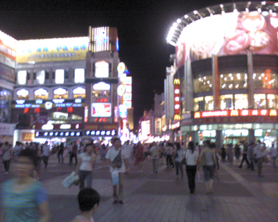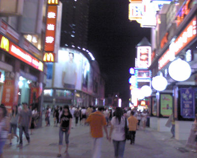 人来人往的商业步行街体现了我们祖国的经济快速发展